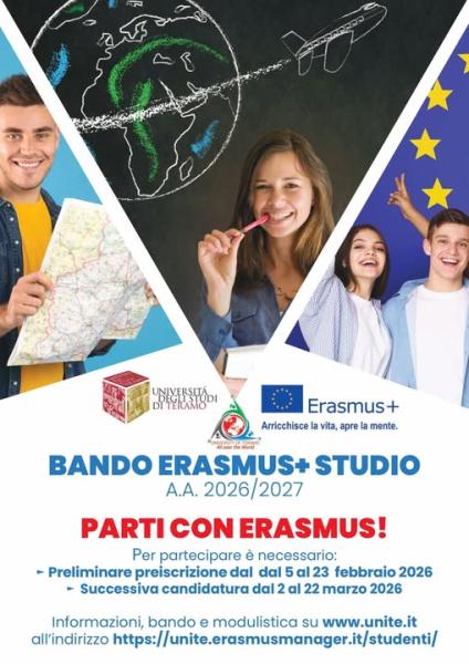 Per gli studenti di UNITE è uscito il bando Erasmus + Studio.